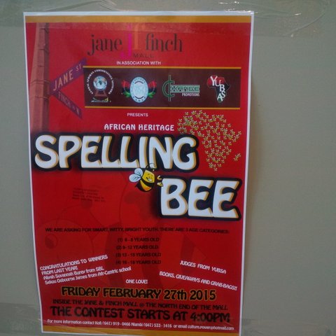 JANE & FINCH MALL IN ASSOCIATION WITH THE G.A.C.N./CULTURE POWER/ CHANGE PROMOTIONS/YUBSA & THE BLACK STONE LIBRARY PRESENTS THE SECOND ANNUAL AFRIKAN HERITAGE SPELLING BEE!!